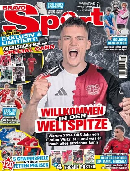 Esta assinatura oferece a versão impressa da BRAVO Sport, publicada na Alemanha e escrita em alemão. A revista é publicada 13 vezes ao ano, garantindo uma dose regular de conteúdo esportivo de alta qualidade. A assinatura inclui todas as edições impressas durante o período contratado.