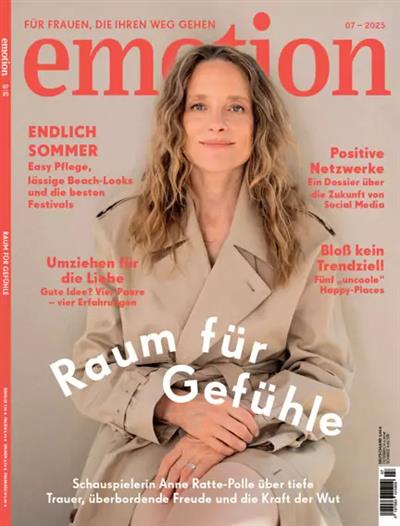 A Emotion é uma revista de estilo de vida feminino da Alemanha, dedicada ao desenvolvimento pessoal, psicologia, bem-estar e relacionamentos. Com artigos perspicazes e entrevistas, ela oferece conselhos práticos que ajudam as leitoras a enfrentar os desafios da vida e a aprimorar sua inteligência emocional e felicidade.