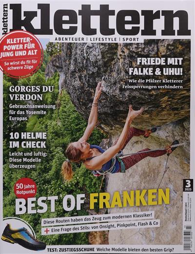 Klettern é uma revista de destaque em língua alemã dedicada aos entusiastas da escalada e do boulder. Oferece informações valiosas sobre áreas de escalada, dicas essenciais de treinamento, análises de equipamentos, entrevistas com os melhores escaladores e reportagens sobre competições e aventuras alpinas. Esta assinatura da versão impressa é essencial para quem é apaixonado por escalada.